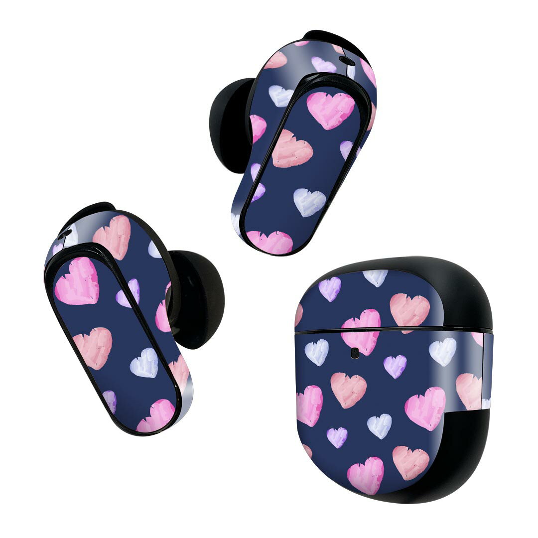 Bose QuietComfort Earbuds II 用 スキンシール ボーズ イヤバッズ2 用 ステッカー 本体3セット ケース1セット 保護 フィルム デコ 色彩 ハート ピンク 紫 010745