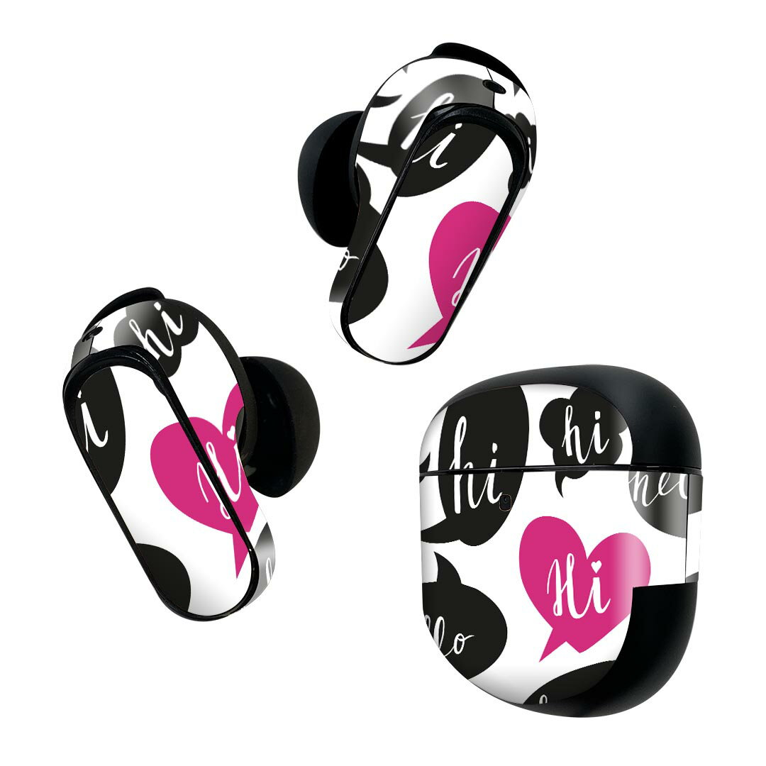 Bose QuietComfort Earbuds II 用 スキンシール ボーズ イヤバッズ2 用 ステッカー 本体3セット ケース1セット 保護 フィルム デコ ハート ピンク 模様 005894