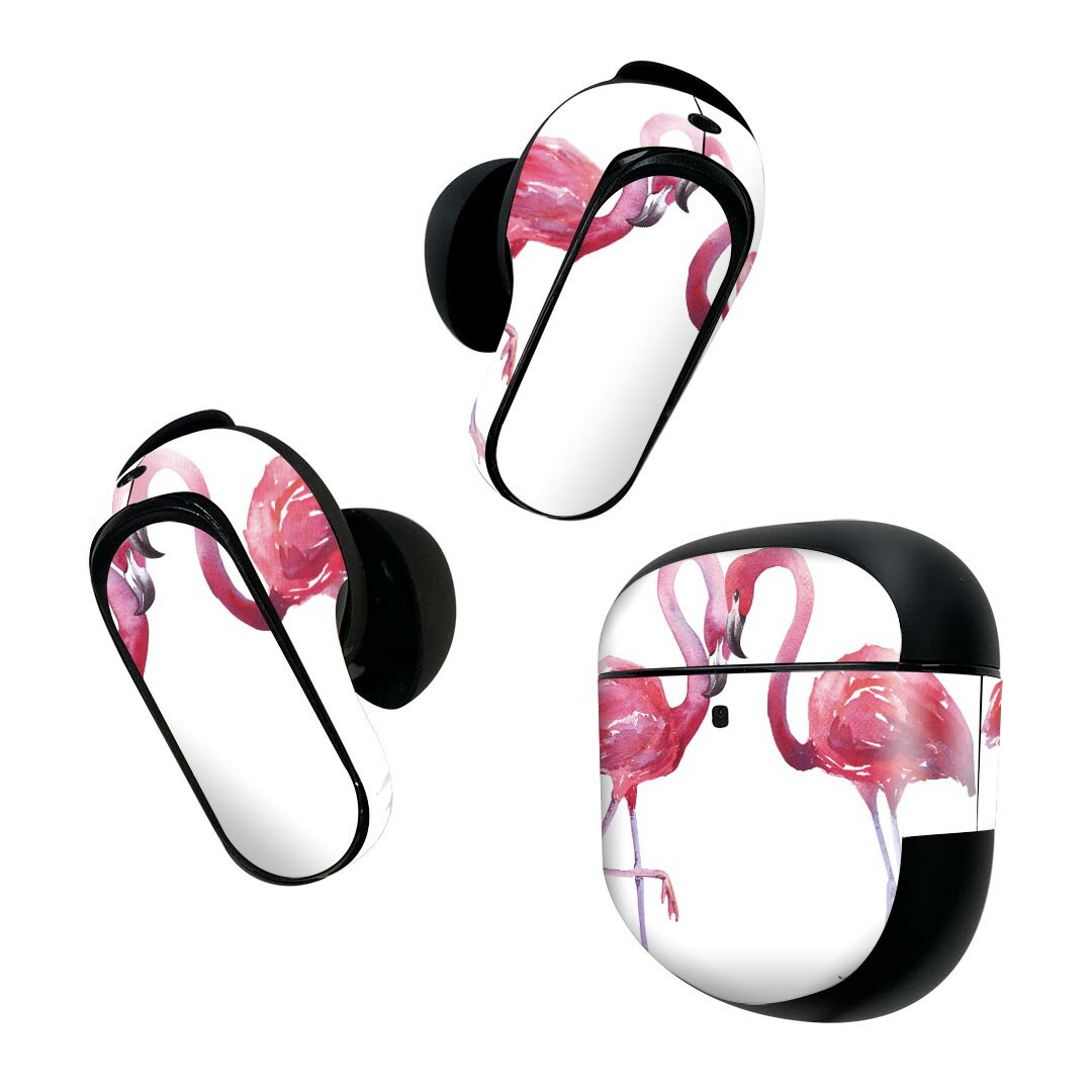Bose QuietComfort Earbuds II 用 スキンシール ボーズ イヤバッズ2 用 ステッカー 本体3セット ケース1セット 保護 フィルム デコ フラミンゴ ピンク 鳥 011411