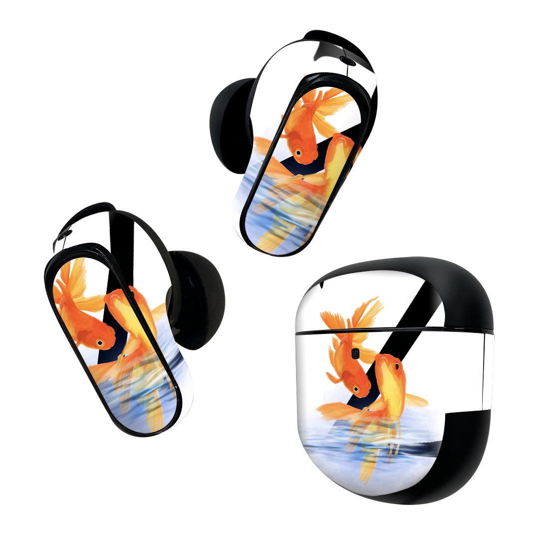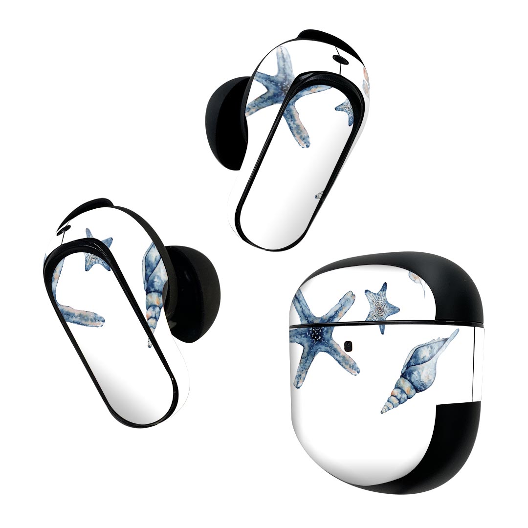 Bose QuietComfort Earbuds II 用 スキンシール ボーズ イヤバッズ2 用 ステッカー 本体3セット ケース1セット 保護 フィルム デコ 海の中 Underwater ヒトデ 貝殻 海の中 017850