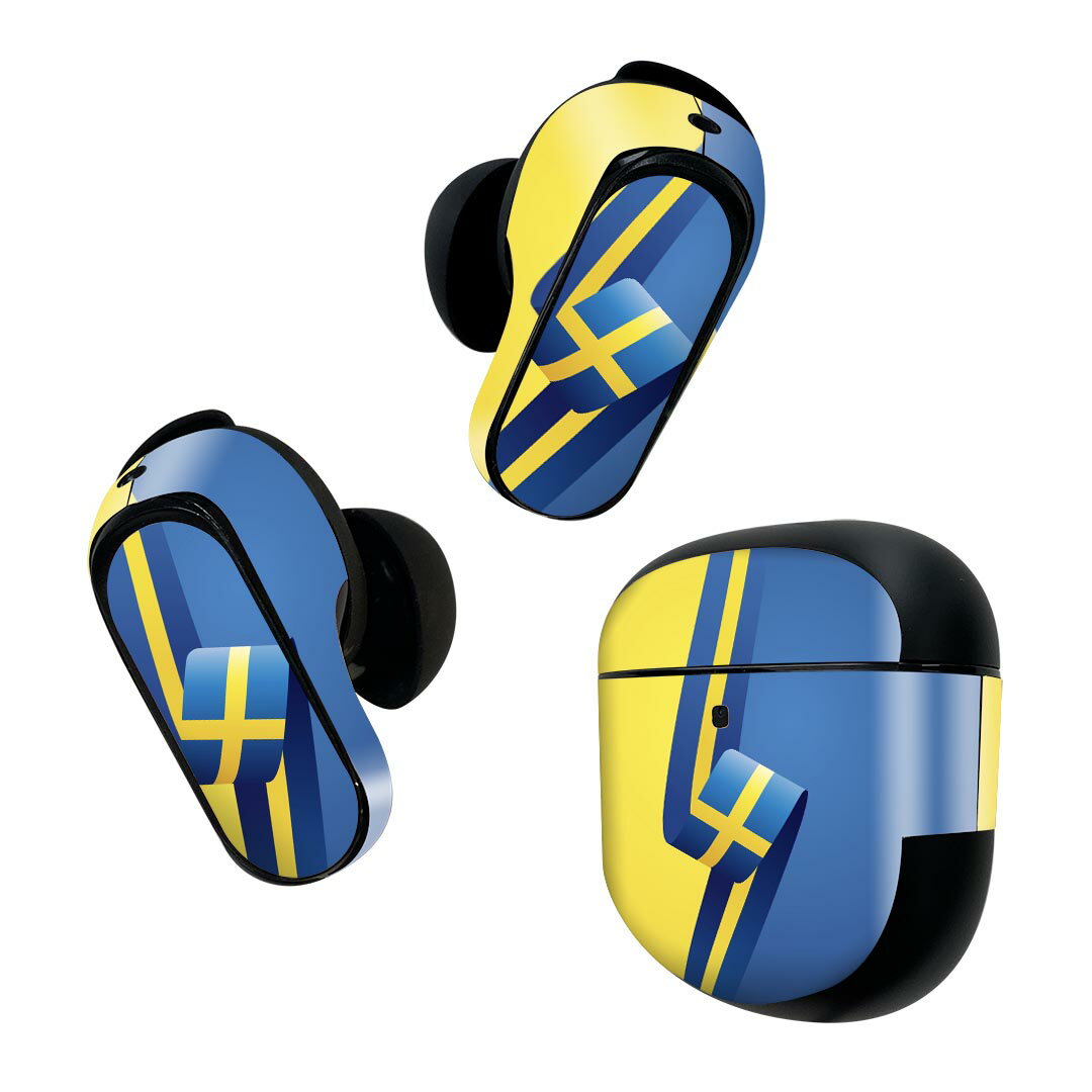 Bose QuietComfort Earbuds II 用 スキンシール ボーズ イヤバッズ2 用 ステッカー 本体3セット ケース1セット 保護 フィルム デコ シンプル 青 黄色 国旗 003508
