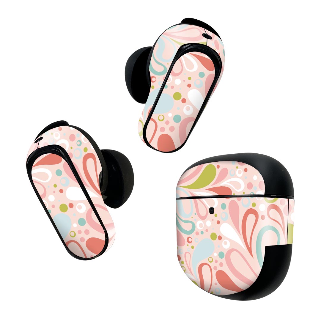 Bose QuietComfort Earbuds II 用 スキンシール ボーズ イヤバッズ2 用 ステッカー 本体3セット ケース1セット 保護 フィルム デコ 模様 ピンク カラフル 003548