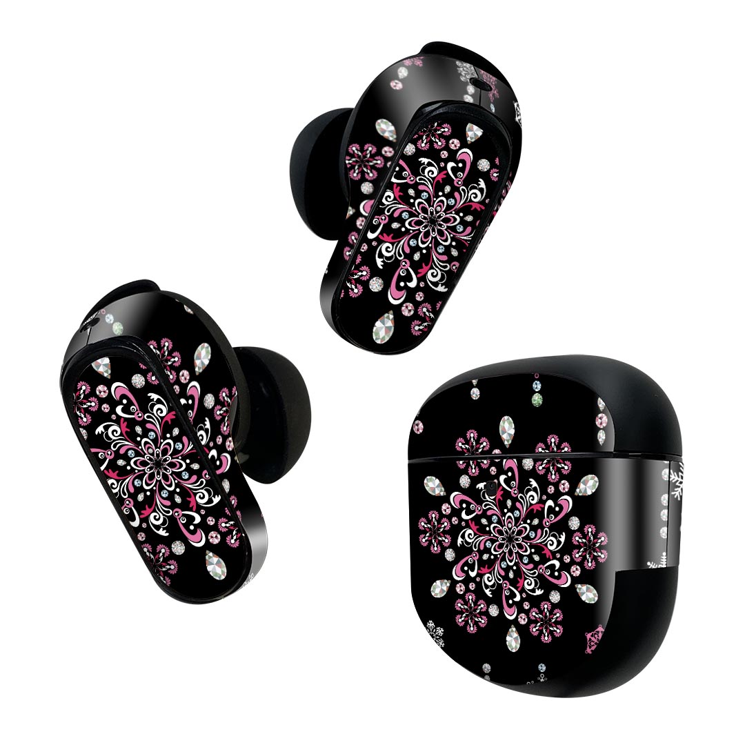 Bose QuietComfort Earbuds II 用 スキンシール ボーズ イヤバッズ2 用 ステッカー 本体3セット ケース1セット 保護 フィルム デコ 雪 結晶 レース ピンク 007627