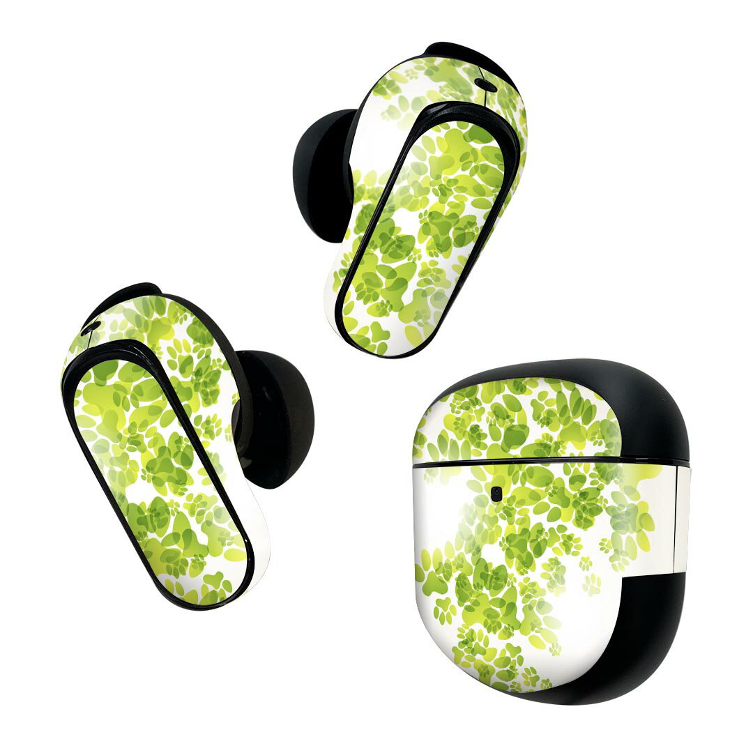 Bose QuietComfort Earbuds II 用 スキンシール ボーズ イヤバッズ2 用 ステッカー 本体3セット ケース1セット 保護 フィルム デコ 動物 足跡 緑 グリーン 008124