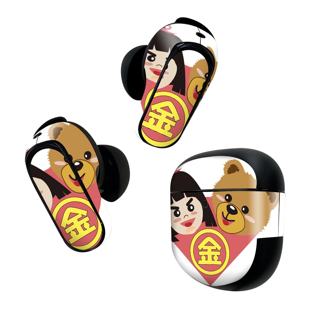 Bose QuietComfort Earbuds II 用 スキンシール ボーズ イヤバッズ2 用 ステッカー 本体3セット ケース1セット 保護 フィルム デコ 金太郎 熊 015261