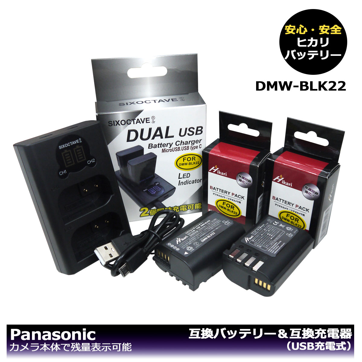 送料無料 パナソニック DMW-BLK22 互換バッテリーパック 2個 とDUAL 互換USB充電器の 3点セット( 2個同時充電可能! )DC-S5K-K / DC-GH5 / DC-GH5S / DC-GH5M2 (DC-GH5 II) / DC-GH6 / LUMIX S5II / S5 IIX / DC-G9M2 / G9PROII / G9 II / DC-S9 / DC-GH7 / DC-GH7L