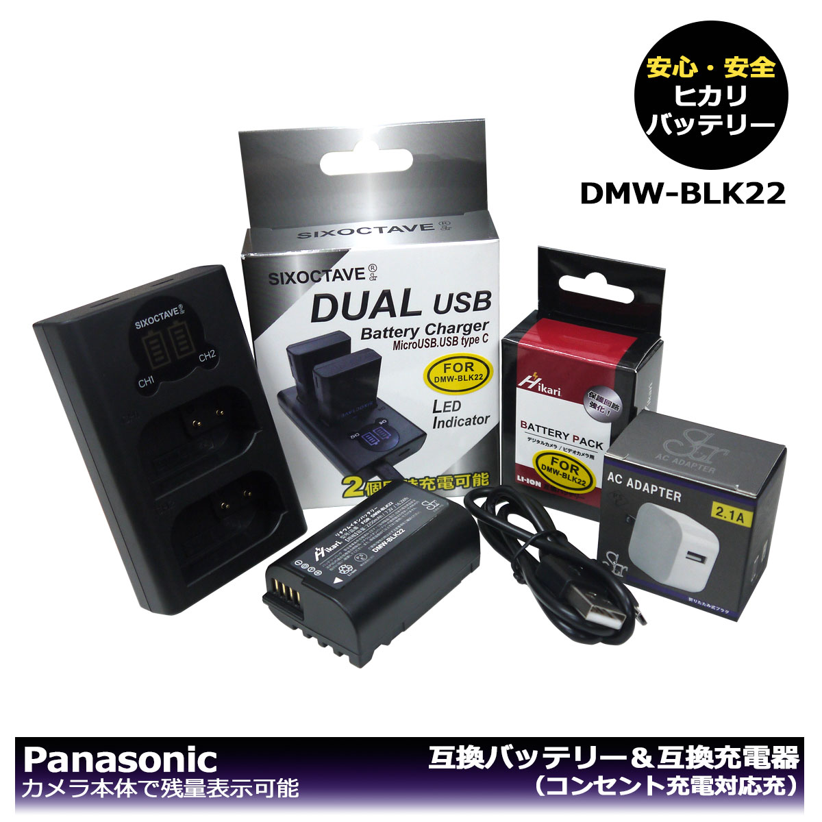 パナソニック DMW-BLK22 互換バッテリー 1個 とDUAL 互換充電器の 2点セット( 純正充電器DMW-BTC15で充電可能 )DC-S5 / DC-S5K / DC-S5K-K / DC-S5M2 / DC-S5M2X / DC-GH5 / DC-GH5S / DC-GH5M2 / DC-GH6 / DC-G9M2 / G9PROII / G9 II / DC-S9 / DC-GH7 / DC-S1M2ES