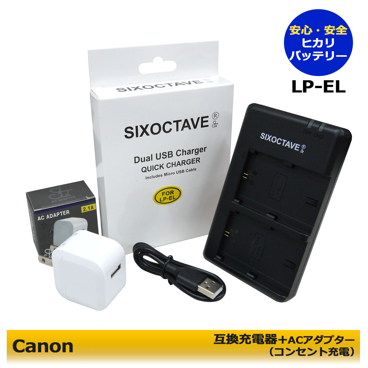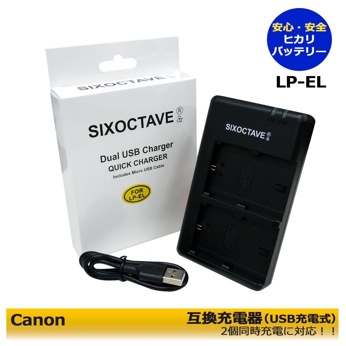 【送料無料】LP-EL / LC-E6/LC-E6E キャノン 互換充電器(USB充電式) 1個 ストロボ スピードライト用 DUAL EL-1 / EL-5 2個同時充電可能! 純正バッテリーも充電可能