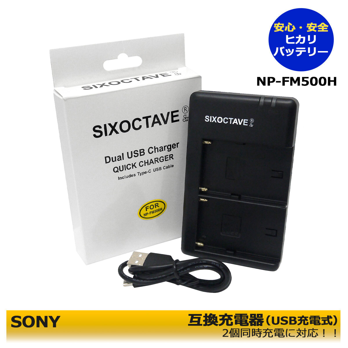 NP-FM500H / NP-FM50 / NP-FM55H / NP-FM70 ソニー DUAL 互換充電器 1点(USB充電式)2個同時充電可能! α99 II / α77 II / α99 / α65 / α58 / α77 / α57 / DSLR-A550 / α550