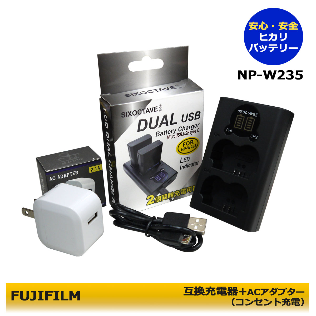★コンセント充電可能★ NP-W235 富士フィルム DUAL 互換充電器 1個と ACアダプター1個の 2点セット 純正バッテリ-でも充電可能 X-S20 / X-T4 / X-T5 / F X-T4-B / F X-T4-S / F X-T4LK-1680-B / F X-T4LK-1680-S / GFX100S II (A2.1) 2個同時充電可能