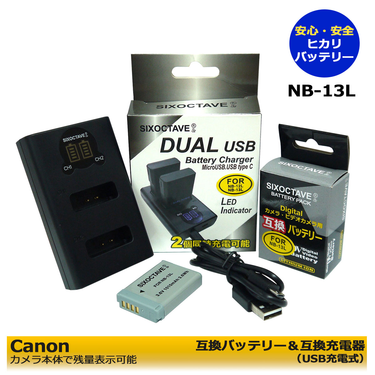Canon キャノン NB-13L 互換バッテリーパック 1個と互換デュアル USB充電器の2点セット PowerShot G5 X Mark II PowerShot G7 X Mark II PowerShot G9 X Mark II