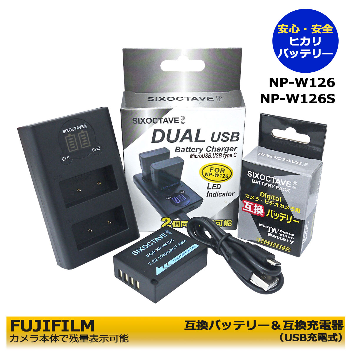 送料無料 富士フィルム NP-W126 / NP-W126S 互換交換電池 1個(カメラ本体で残量表示可能) デュアルUSB 互換充電機 1個の 2点セット X-E2 / X-E3 / X-E4 / X-M1 / X-Pro1 / X-Pro2 / X-Pro3 / X-T1 / X-T2 / X-T3 / X-T10 / X-T20 / X-T30 / X-T30 II / X-T50