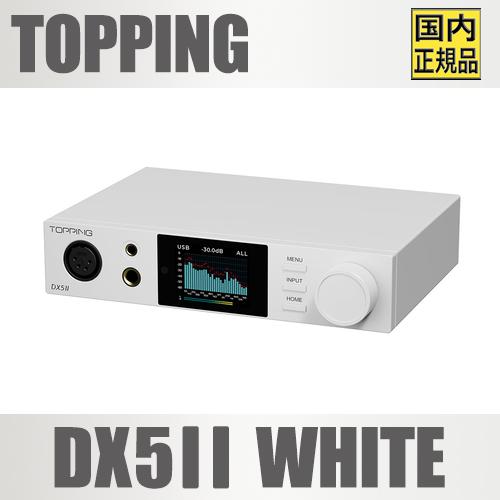 TOPPING DX5II【ホワイト】 新世代フルバランスデスクトップDAC/AMP フルバランスD/A構成 ES9039Q2MデュアルDAC DX5IIのD/A回路には自社開発のI/V変換回路を採用した、ESS社の新世代DAC「ES9039Q2M」をLRへデュアル構成で採用することで、DX5よりも高いS/N比、優れたダイナミックレンジ、低歪み(<0.00006%)を実現しています。 これにより、DX5IIはコンパクトでありながらも、高い解像度と豊かなダイナミクスを実現した、優れたサウンドパフォーマンスを提供することができます。 次世代アーキテクチャ X-Hybrid Headphone AMP Circuit X-Hybrid AMPはこれまでの製品に採用してきたNFCA(Nested Feedback Composite Amplifer)モジュールに代わる革新的アーキテ クチャです。 ディスクリート入力段、ディスクリート出力段、オペアンプの3段ステージで構成される、新開発のハイブリッドヘッドフォンアンプ回路を採用しました。 従来機に採用してきたNFCAモジュールの超低歪率、優れたダイナミックレンジは継承し、回路構成を最適化することでアイドル状態の消費電力と発熱を効果的に抑制し、回路全体の電源効率を大幅に向上させています。 コンパクトなボディの中に、フルバランスの4チャンネルアンプを搭載したDX5IIは、高い駆動力と歪みを感じさせないハイクオリティなサウンドを実現しています。 自社開発I/V変換ソリューション DX5IIに採用したES9039Q2Mは、優れたSNR特性の電流出力で動作し、DACチップのポテンシャルをフルに引き出すために自社開発のI/V変換モジュールを採用しています。 コンパクトなデザインの中で物理的な限界に挑戦するこの卓越した回路設計は、DACチップ最大限のパフォーマンスを引き出すためにはとても重要なセクションです。 この卓越した回路設計により、DX5IIはコンパクトサイズのデスクトップDAC/AMPの中でも驚異的な低歪みと低ノイズを実現し、優れたサウンドクオリティを実現することができています。 あらゆるヘッドホンを一台で掌握する 6.35mmシングルエンドと4.4mmバランスヘッドフォン端子、そして4pinXLR端子を備え、インピーダンスを問わず幅広いイヤ ホン・ヘッドホンのニーズに対応することが可能です。 1.8uVrmsの低ノイズフロアは、高い感度を有するプロユースのIEMにも対応し、7600mW×2@16Ω、6400mW×2@32Ωのパワフルな出力により、 あらゆるヘッドホンのポテンシャルをフルに引き出します。 シンプルかつスピーディなUI&UX Aurora UIハイスピードエクスペリエンス 2.0インチのフルカラースクリーンと3つの物理ボタンで、迅速なセットアップと効率的なコントロールが可能になっており、UIカラーは9色のカラーからメインカラーを自由に選択ができ、さらにメイン画面の表示内容を再生ステータス表示、FFT(高速フーリエ変換)、VUメーターから選んでお好みにカスタマイズすることが可能になっています。 電源/ボリュームダイヤルのプッシュ操作は、ファンクションキーとなっており、設定からショートカットキーとして、自由にカスタマイズすることが可能です。 ユーザーの良く使用する項目や、シーン・ニーズに合わせて設定することが可能です。 カスタマイズ可能な10バンド パラメトリックイコライザー搭載 新開発のPEQ機能はカスタマイズ可能な10バンドの周波数帯域調整に対応し、TOPPINGが独自開発したアジャストメントアルゴリズムとデスクトップソフトウェアにより、周波数・Gain・帯域幅を細かく設定することができるTOPPINGオリジナルのPEQです。 ソフトウェアは、ターゲットカーブとのインポートをサポートし、ターゲットカーブを使用したEQの作成やカーブ補正ができ、他のユーザーの作成したEQを元にオリジナリティを追求したり、共有したりすることが可能です。 また、複数のプロファイルを保存することができ、ユーザーのお好みのプリセットの保存と切り替えができ、音楽のリスニングからゲーミングシーン、映像コンテンツにまで、最適化した嗜好のサウンドを実現することができます。 ※PEQはPCM:192kHz / 32bitまでの音源に反映されます。 XMOS XU316&Thesycon Driver 安定と信頼のプラグ&プレイ DX5 IIは幅広い互換性を持ち、Windows10、Windows11、MAC、Linux、iOS/Androidなど様々なOSに対応しています。 第3世代のUSBインターフェースXMOS XU316とThesycon社のUSB AUDIOドライバを採用しており、安定性と信頼性に優れています。 また、USB入力の対応サンプリングはPCM/768kHZ/32bitとDSD512まで対応しており、楽曲に忠実で細部まで鮮やかに再現します。 ※Windows デバイスでは、ドライバをインストールしてセットアップする必要があります。 他のシステムではドライバは必要ありません。 LDACをサポートした、 Bluetoothレシーブ機能対応 Qualcomm社QCC5125チップを搭載したDX5IIは、Bluetooth5.1に対応し、最大96kHz/24bitまで高品質ワイヤレス接続をサポートします。 また、LDAC/ aptX-Adaptive / aptX / aptX HD / AAC / SBCなどのBluetoothコーデックに対応し、ワイヤレスでも高音質なリスニングをサポートします。 自由にカスタマイズが可能な、 アウトプットオプシ