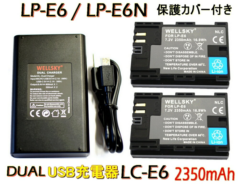 送料無料 キャノン LP-E6N 互換バッテリーパック 1個 と デュアル 互換USBチャージャーの 2点セット EOS 5DS R / EOS 60D / EOS 60Da / EOS 6D / EOS 6D Mark II / EOS 70D、EOS 7D / EOS 7D Mark II / EOS 80D、XC15 / EOS R5 / EOS R6 Mark II
