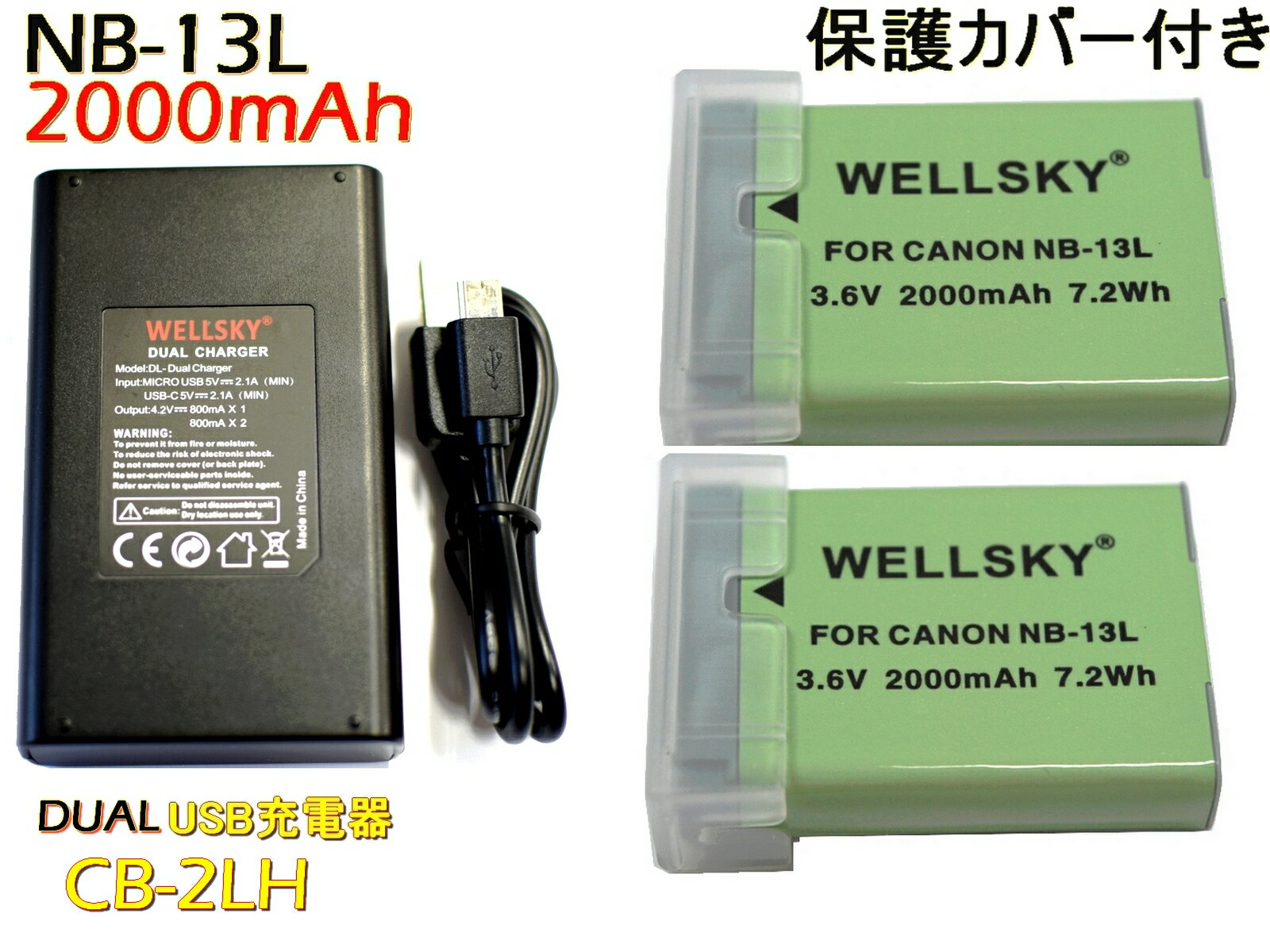送料無料 Canon NB-13L 互換電池 2個(残量表示可能)と互換デュアルUSB充電器の3点セット PowerShot G7 X (G7X)/PowerShot G5 X (G5X)/PowerShot G9 X (G9X)/PowerShot G7 X Mark II/PowerShot G9 X Mark II/PowerShot SX620 HS