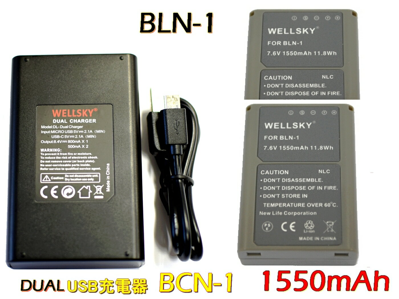 BLN-1 互換バッテリー 1550mAh 2個 & BCN-1 [ デュアル ] USB 急速 Type-C 互換充電器 バッテリーチャージャー 1個 [ 3点セット ] [ 純正品と同じよう使用可能 残量表示可能 ] OLYMPUS オリンパス OM-D E-M5 / E-P5 / E-M1/ E-M5 Mark II