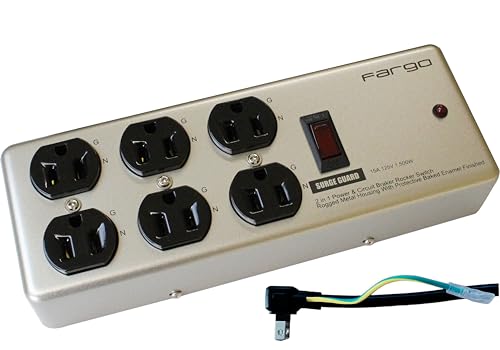 Fargo STEEL TAP 電源タップ スチール製 3ピン対応 アース線付き コード 壁掛け 固定 シルバー 6個口1.8m