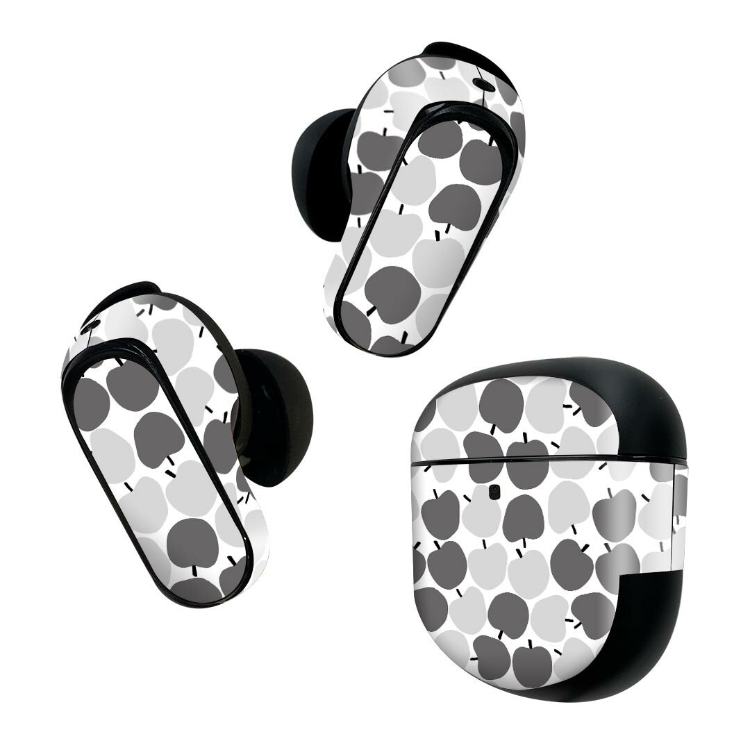 Bose QuietComfort Earbuds II 用 スキンシール ボーズ イヤバッズ2 用 ステッカー 本体3セット ケース1セット 保護 フィルム デコ りんご 果物 モノクロ 010717