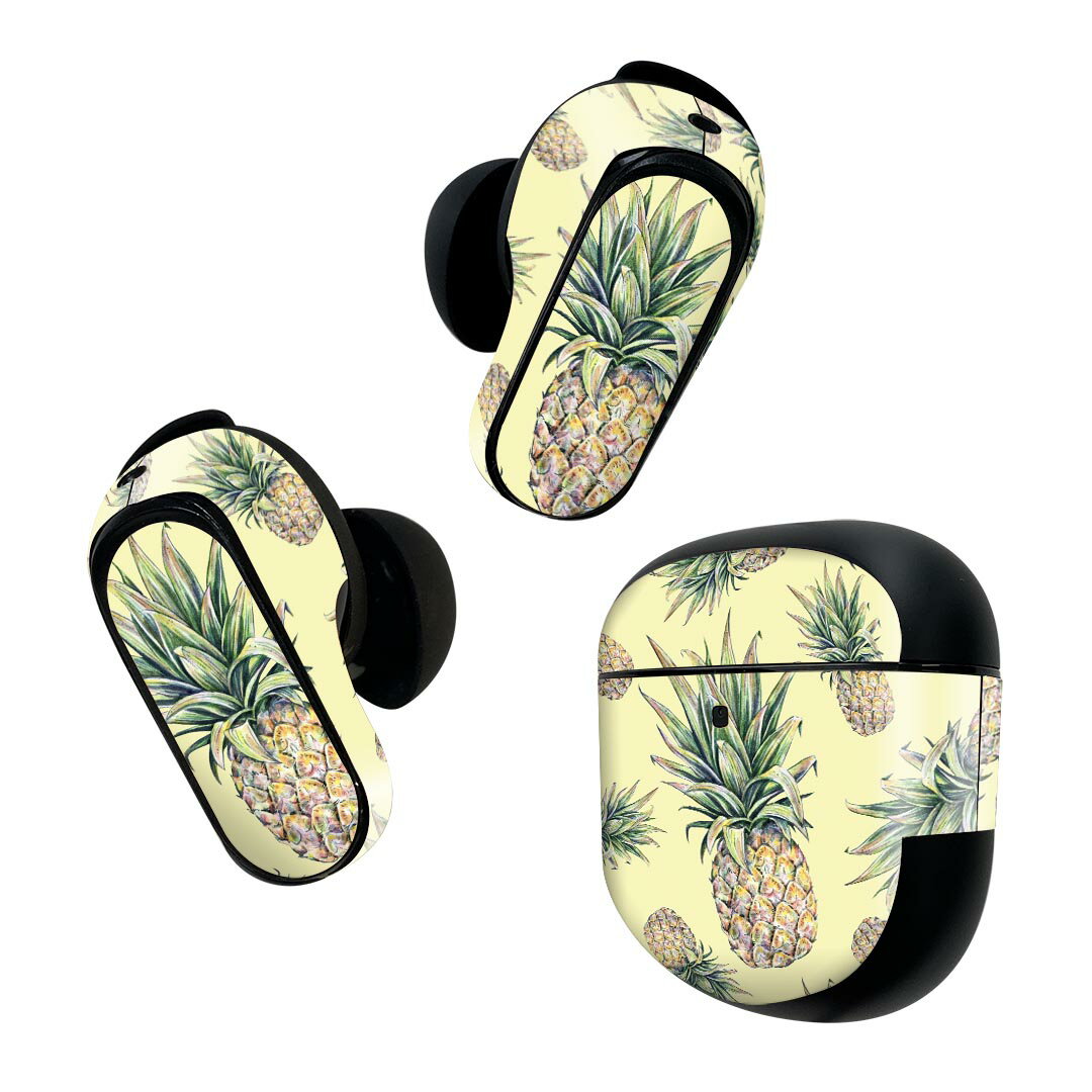 Bose QuietComfort Earbuds II 用 スキンシール ボーズ イヤバッズ2 用 ステッカー 本体3セット ケース1セット 保護 フィルム デコ パイナップル 黄色 果物 012126