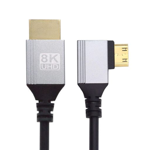 xiwai超薄型HDTVケーブル90度左向き角度付きミニHDMI2.1タイプAからタイプC8K4KハイパースーパーフレキシブルスリムコードカメラHDTV用0.5m/1.5フィート