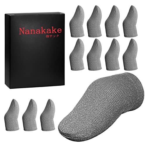 【送料無料】Nanakake 指サック 12個入り 二層エッジ折り 銀繊維100% 超薄型 スマホ ゲーム 音げー ゆびさっく 超高感度 指カバー 手汗対策 操作性アップ なタッチ感 ゲーム体験 スマホ/タブレット 全機種対応 反応早い 指スリーブ(グレー)
