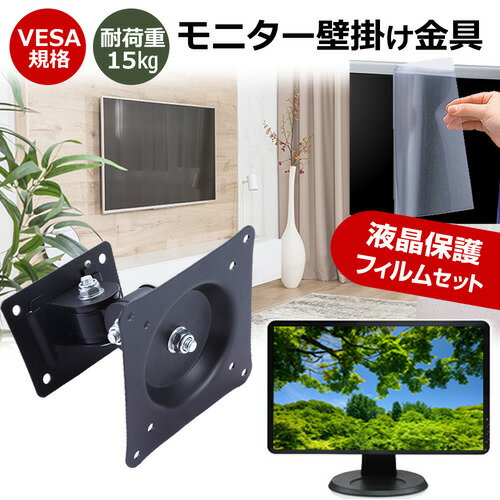 【壁掛けで省スペース&反射防止で見やすい】Lenovo Legion R25i-30 67B7GACBJP [24.5インチ(1920x1080)] 用 壁掛けモニター金具と反射防止液晶保護フィルムのセット。VESA規格対応で簡単取り付け、デスクを広く使えます。特徴◆モニター壁掛け金具の特徴・VESA規格対応、14〜29型までの液晶モニターに対応する壁掛け金具です。・壁面へ取り付けることで、デスク上のスペースを有効活用できます。・壁に取り付けた状態で、液晶モニターを上下左右180度に振ることが可能です。・壁から11cmの距離を確保しており、配線の取り回しもスムーズです。製品仕様◆モニター金具仕様・対応モニタ:14〜29型・対応ネジ穴:背面に4点のネジ穴があるモニター・ネジピッチ:75mm / 100mm(VESA規格対応)・耐荷重:15kg・カラー:ブラック付属品◆モニター金具付属品・壁面埋め込み用のプラスチックアンカー ×4個・壁面用ネジ ×4個・モニター背面用ネジ ×4個・六角レンチ工具 ×1個・ディスプレイ落下防止用ネジ ×1個液晶保護フィルム特徴◆反射防止タイプの液晶保護フィルム・反射防止(ノングレア)加工により、蛍光灯や自然光の映り込みを軽減し、目の負担を和らげます。・高い透過率88%で、液晶本来の色味を美しく表示。・硬度3Hのハードコート仕様で、キズから液晶画面を保護します。・貼付け時に便利なヘラとクリーニングクロス付き。商品内容◆セット内容・モニター壁掛け金具 一式・反射防止液晶保護フィルム ×1枚・貼付け用ヘラ ×1個・クリーニングクロス×1枚ご購入前の注意点◆ご購入前の注意点・機器本体は付属しておりません。・壁掛け金具は汎用品です。専用品ではありません。・液晶保護フィルムは、液晶画面表示領域のみをカバーする仕様です。ベゼル部分を含めたフラット部分全面をカバーする仕様ではございません。・画面内指紋認証は、フィルムを貼った後での登録をお勧めします。感度が鈍くなる場合がございます。・記載された製品名やブランド名は、適合サイズの説明の便宜上使用しており、各社の商標または登録商標です。・当製品は互換品となります。公式メーカーが販売、製造するものではございません。純正品ではないことをご了承ください。ブランドメディアカバーマーケットは、PC・タブレット・スマートフォンなどの画面保護ソリューションを提供する国内専門ブランドです。豊富な機種対応と、法人・教育機関への導入実績を誇ります。品質保証液晶保護フィルムは消耗品のため、未使用(貼り付け前・保護シート未剥離)の状態に限り返品・交換を承っております。商品到着時、ご注文と異なる商品が届いた場合や、初期不良などがある場合、1週間以内にメールにてご連絡ください。商品のお取り換え、もしくはご返金をさせていただきます。詳しくは返品ポリシーをご覧ください。Lenovo Legion R25i-30 67B7GACBJP [24.5インチ(1920x1080)] 用の壁掛けモニター金具と反射防止フィルムのセット。VESA規格対応の金具で、モニターを壁に掛けてデスクを広く快適に活用!セットの反射防止フィルムはノングレア加工で目の疲れを軽減。機能性と空間効率を重視するテレワークやオフィス利用に最適なアイテム!法人・教育機関への導入実績豊富な国内ブランド【メディアカバーマーケット】テレビ 壁掛け■対応機種Lenovo Legion R25i-30 67B7GACBJP [24.5インチ(1920x1080)]VESA規格 モニター壁掛け金具特徴VESA規格対応、壁面へ取付けるタイプの液晶モニター壁掛け金具です。液晶モニターを壁にかけることで、デスクがすっきり!広く使うことができます。インテリアの邪魔にもなりません。壁に取り付けた状態で、液晶モニターを上下左右180度に振ることが可能です。壁からの距離も配線しやすい11cmを確保!【商品詳細】対応モニタ:14〜29型背面に4点のネジ穴があるモニター対応ねじピッチ:75mm or 100mm(VESA規格対応)耐荷重:15kgカラー:ブラック【付属品】壁面に埋め込む用のプラスチックアンカー 4個壁面用ねじ 4個モニター背面用ネジ 4個六角レンチ工具 1個ディスプレイが壁から落ちるのを防ぐためのねじ 1個液晶保護フィルム特徴反射防止タイプ保護フィルム反射防止(ノングレア、アンチグレア)加工により蛍光灯などの光の映り込みを軽減し、目の負担を軽減します。液晶画面の美しさを損なわない高い透過率(全光線透過率88%)です。硬度3Hのハードコート仕様です。キズが入りにくく液晶画面を保護します。気泡を取り除くためのヘラとクリーニングクロスセット付き。 ※ご購入前の注意点※※機器本体は付属しておりません。液晶保護フィルムは、液晶画面表示領域のみをカバーする仕様です。ベゼル部分を含めたフラット部分全面をカバーする仕様ではございません。画面内指紋認証は、フィルムを貼った後での登録をお勧めします。感度が鈍くなる場合がございます。テレビ 壁掛け 金具 VESA 規格 角度調節 モニターアーム