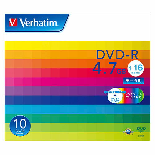 MITSUBISHI 三菱電機 Verbatim製 データ用DVD-R 4.7GB 1-16倍速 ワイド印刷エリア 5mmケース入り 10枚 (DHR47JP10V1)