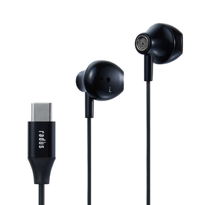 ラディウス TypeC直結イヤホン ブラック [リモコン・マイク対応] HP-NEL12CK