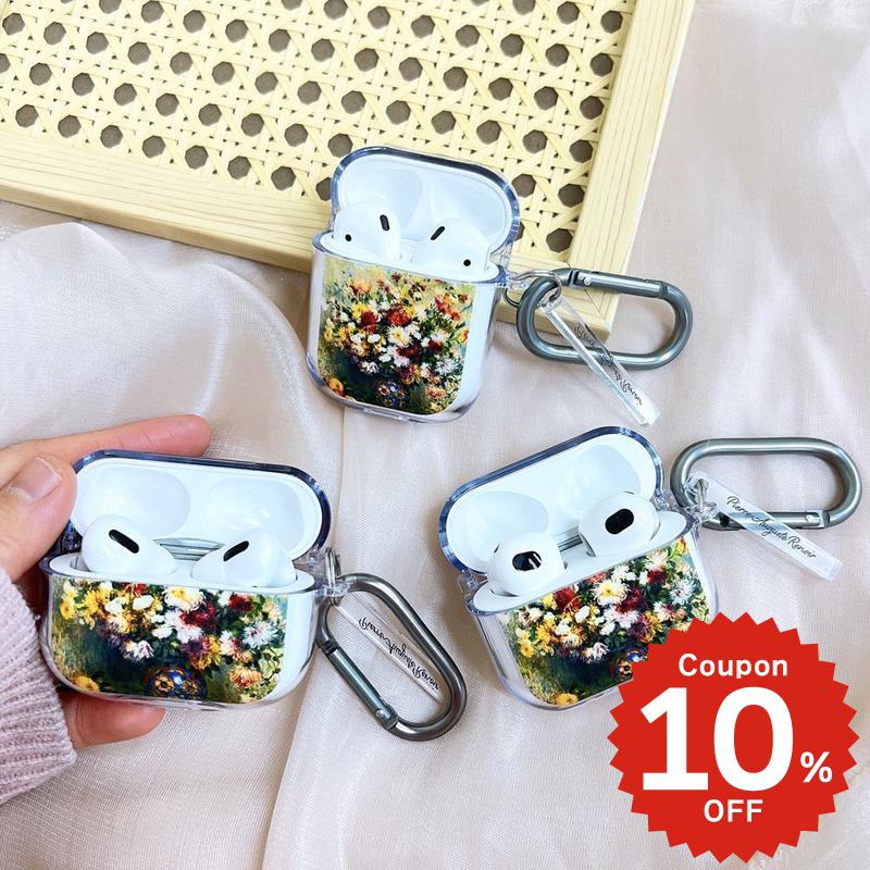 airpods pro 3 ケース かわいい airpods pro 2 ケース airpods 4 ケース 第4世代 韓国 airpods proケース おしゃれ 第2世代 ケース カバー airpods 2 3 第3世代 第1世代 絵画 名画 アート ルノワール Vase of Chrysanthemums クリア 透明 レディース メンズ