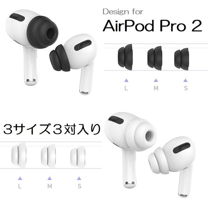 AHASTYLE アップル AirPods Pro/ AirPods Pro2対応 エアポッズ プロ 2 イヤポッズ用 高級シリコン 互換 バッズ 遮音性 脱着簡単 S/M/L 3ペア 1セット (ブラック、ホワイト)2色選択