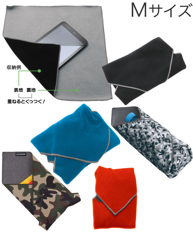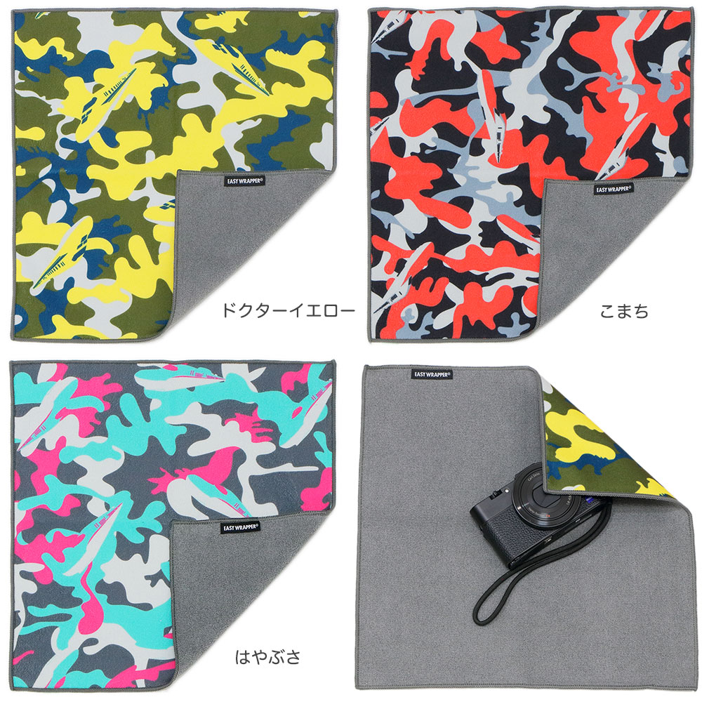 ・イージーラッパーは、巻くだけでくっつく新世代の風呂敷風、機材保護ラップ。 ・裏地と表地が触れるとくっつくので、大切なものをくるくるっと包んでいくだけでぴったりくっつき、はがす時もいやな音がしない。 ・表地と裏地ならどこでもくっつくので、持ち運んでもバッグの中でもばらけず、軽く持ち上げると簡単にはがすことが可能。 ・ミラーレスカメラ・レンズ・三脚アクセサリー・タブレットなど、大切に扱いたいものを包むのに最適! ・水洗いOK! Mサイズ:350×350mm カラー:ブラック/ブラック/レッド/ブルー/モノクロ迷彩/グリーン迷彩(カモフラージュ)/迷彩 時計・コンデジ・キーホルダー・アクセサリーなど、小さくて大切なものを包むのに最適! 素材:ポリエステル100% *防水仕様ではありません。 *重ねた部分を持ち手にしてぶら下げないでください。中身が落下する恐れがあります。 *この商品はメール便で発送します。 *宅配便をご希望の際は『当店への連絡事項欄』にお書きください。その際は別途宅配便送料がかかります。