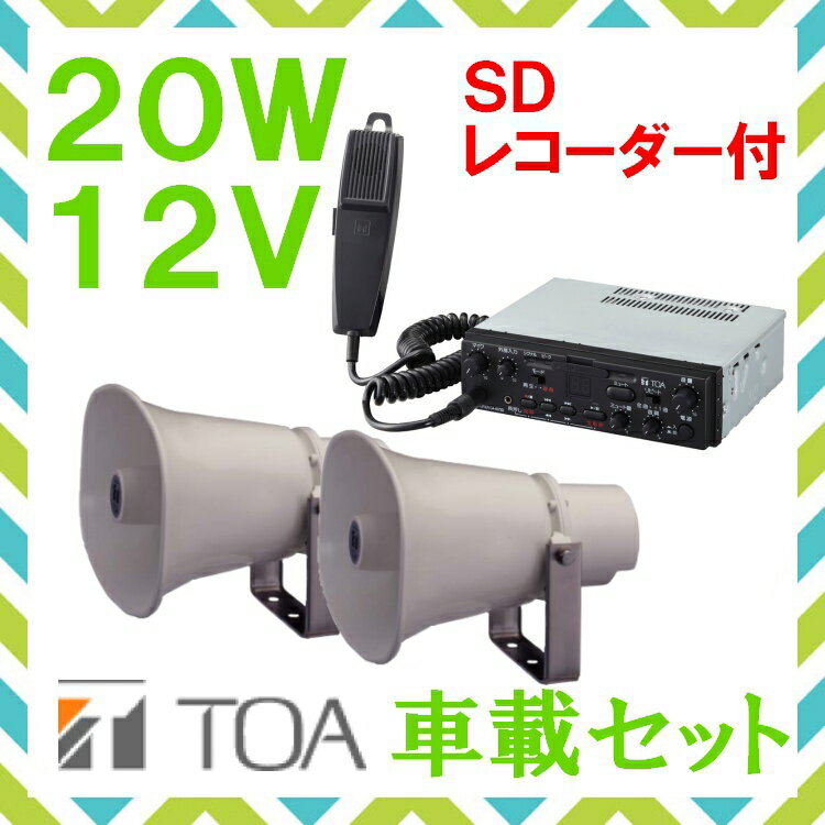 資源回収車・移動販売車・工事車両に最適のセットです!【セット内容】・TOA 15W ホーンスピーカー SC-715A ×2(定格入力:15W、インピーダンス:8Ω)・TOA 20W SD付アンプ 12V用 CA-207SD ×1(定格出力:20W、インピーダンス:4Ω/8Ω)・ハンドタイプマイクロホン(付属マイク)・スピーカーコードは別売です。※北海道・沖縄・離島地域は、別途送料をご負担頂きます。