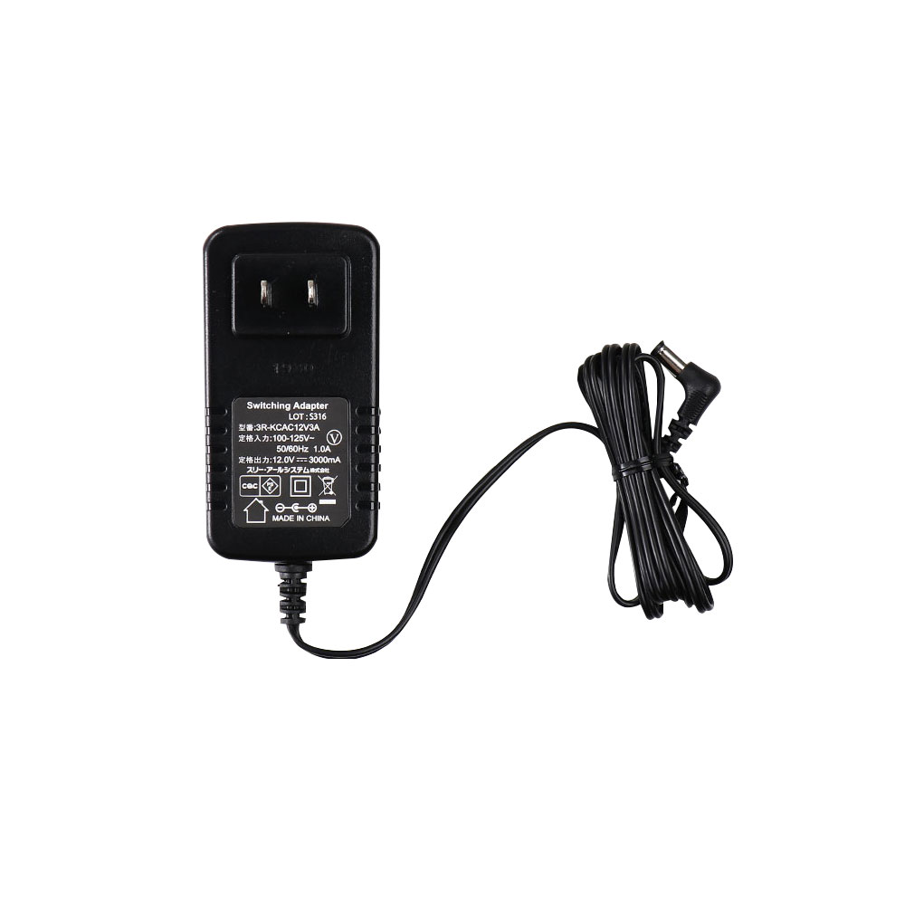 ACアダプター 12V スイッチング式 3A 1.2m L型コネクタ ブラック 出力プラグ外径5.5mm(内径2.1mm) 3R スリーアールソリューション