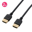 【送料無料】エレコム HDMI ケーブル 極細 ハイスピード 2m スーパースリム 4K・2K 【HIGH SPEED with ETHERNET認証済み】 3重シールド 金メッキ ARC テレビ・パソコン・ゲーム機など対応 黒 ECDH-HD14SS20BK
