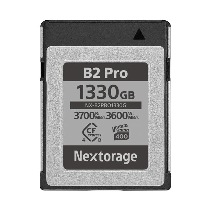 種別:その他メディア NOTE次世代パフォーマンスで新たな高みへCFexpress 4.0 メモリーカード次世代規格のCFexpress 4.0に対応し、高速連写や高精細な動画撮影に必要な仕様を備えるNX-B2PROシリーズ。撮影から取り込み、編集までのプロセスにおいて、かつてないパフォーマンスを発揮し、効率のよいスムーズなワークフローを実現します。クラス最高レベルの高速書き込み・高速読み出し性能最大読み出し速度3900MB/s、最大書き込み速度3600MB/s、最低継続書き込み速度3400MB/sを実現。※1※2このクラス最高レベルの性能により、RAW画質での高速連写から8K動画撮影まで、あらゆる撮影シーンに安定したパフォーマンスを発揮します。また、撮影後のデータ転送や編集作業においても、高容量データの転送時間を飛躍的に短縮し、ワークフロー効率を向上させます。動画撮影をさらに安定させる、独自の低消費電力技術Nextorage独自の低消費電力技術「Dynamic Auto Power Save(ダイナミックオートパワーセーブ)」を搭載。動画撮影における電力消費とカードの温度上昇を効果的に抑制。非搭載のモデルと比較して、消費電力を最大49%削減します。サーマルスロットリング*の発生を防ぎ、安定した長時間の動画記録を可能にします。さらに、カメラのバッテリー消費も低減し、撮影可能時間を延ばすことにも寄与します※3*サーマルスロットリング:熱暴走を防ぐ目的で転送速度を減衰させる制御機能CFexpress 2.0対応カメラで使用可能NX-B2PROシリーズは、次世代のCFexpress 4.0規格の高性能を備えつつ、CFexpress 2.0規格との下位互換性を確保しています。これによりCFexpress 2.0対応の既存のハイエンドカメラにおいても高性能を生かした撮影を楽しむことが可能です。*CFexpress 4.0非対応の機器においてはCFexpress 2.0規格でのデータ転送を行います。VPG400対応で安定した動画記録をサポート全容量でCompact Flash Associationが策定した規定、ビデオパフォーマンスギャランティーVPG400(最低継続書き込み保証速度400MB/s)に準拠。対応するハイエンドカメラと組み合わせることで、8K高画質動画を撮影するプロにとって欠かせない、高速で安定した動画記録をサポートします。安心の耐久性能CompactFlash Associationの規定に準拠する耐久テストをクリアしています・耐熱性:-12℃~72℃ (動作保証温度)・耐衝撃:EIA-364-27A 準拠・耐X線:ISO7816-1 準拠・耐紫外線:ISO7816-1 準拠・耐磁性:Nextorage独自テストを実施済・耐静電:IEC 61000-4-2 準拠信頼の互換性NX-B2PROシリーズは、各社 CFexpress Type Bメモリーカード対応カメラにおいて最高のパフォーマンスを発揮できるよう、最新機種との互換検証を行なっています。メモリーカード ファイルレスキューNextorage製メモリーカードご購入特典。誤って削除してしまったデータを可能な限り復元するソフトウェアです。著作権保護されたデータの復元には対応していません。また、データの復元を保証するものではありません。ダウンロードにはPC環境が必要です。5年間の製品保証ご購入後5年間の製品保証と国内サポートに対応します仕様モデル名称 / 容量*:NX-B2PRO1330G / 1330GB、NX-B2PRO660G / 660GB、NX-B2PRO330G / 330GB、NX-B2PRO165G / 165GB* 容量は10億バイトを1GBとして表記しています。実際に使用可能な領域は、システムファイル領域があるため、表示されている内容より少なくなります。フォームファクタ:CFexpress Type Bインターフェース:PCIe(R)4.0×2、NVMe1.4NANDフラッシュメモリ:pSLC最大転送速度 (読み出し)※2:NX-B2PRO1330G・660G ⇒ 3700MB/s、NX-B2PRO330G・165G ⇒ 3900MB/s最大転送速度 (書き込み)※2:NX-B2PRO1330G・660G・330G・165G ⇒ 3600MB/s最低継続書き込み速度※2:NX-B2PRO1330G ⇒ 3200MB/s、NX-B2PRO660G・330G・165G ⇒ 3400MB/sVPG400:対応保存温度範囲:-40~85℃動作温度範囲:-12~72℃外形寸法 (W×L×D):約29.6mm × 38.5mm × 3.8mm質量:約10g同梱物:ケース保証:ご購入日より5年間耐久性※4耐温度:-12~72℃(動作温度範囲)耐衝撃:EIA-364-27A 準拠耐X線:ISO7816-1 準拠 空港でのX線手荷物検査によるデータへの影響がありません耐紫外線 (UV):ISO7816-1 準拠耐磁性:Nextorage独自環境にてテスト実施済耐静電:IEC61000-4-2 準拠※1 Nextorage内部テストによります。実際の性能は環境によって異なる場合があります※2 文中の最大パフォーマンスは、NX-B2PRO330Gにおける性能を表します※3 連続撮影可能枚数、連続撮影可能時間はカメラにより異なります※4 耐久性評価は、Nextorageの試験条件に基づいています。製品の破損やデータの破損は、すべての状況において保証されるものではありません