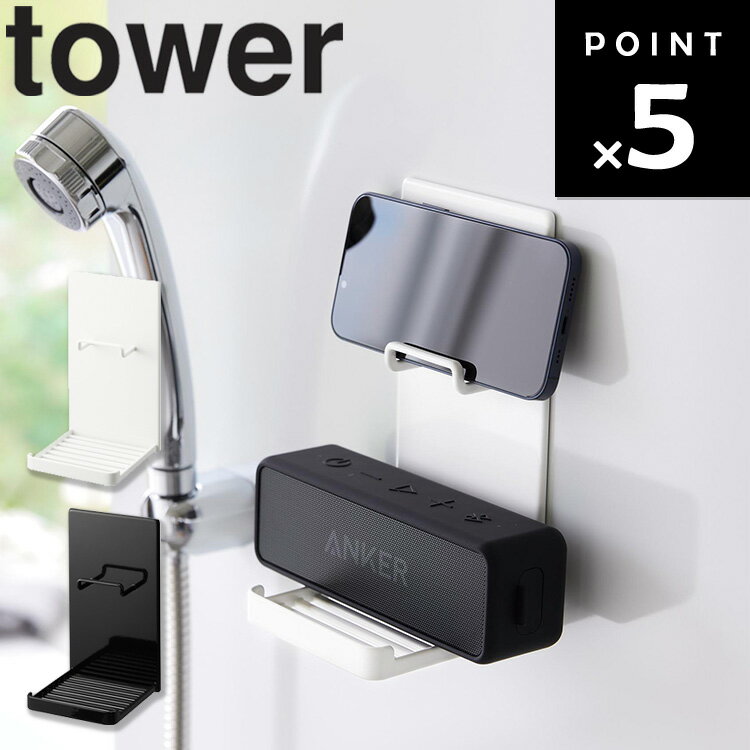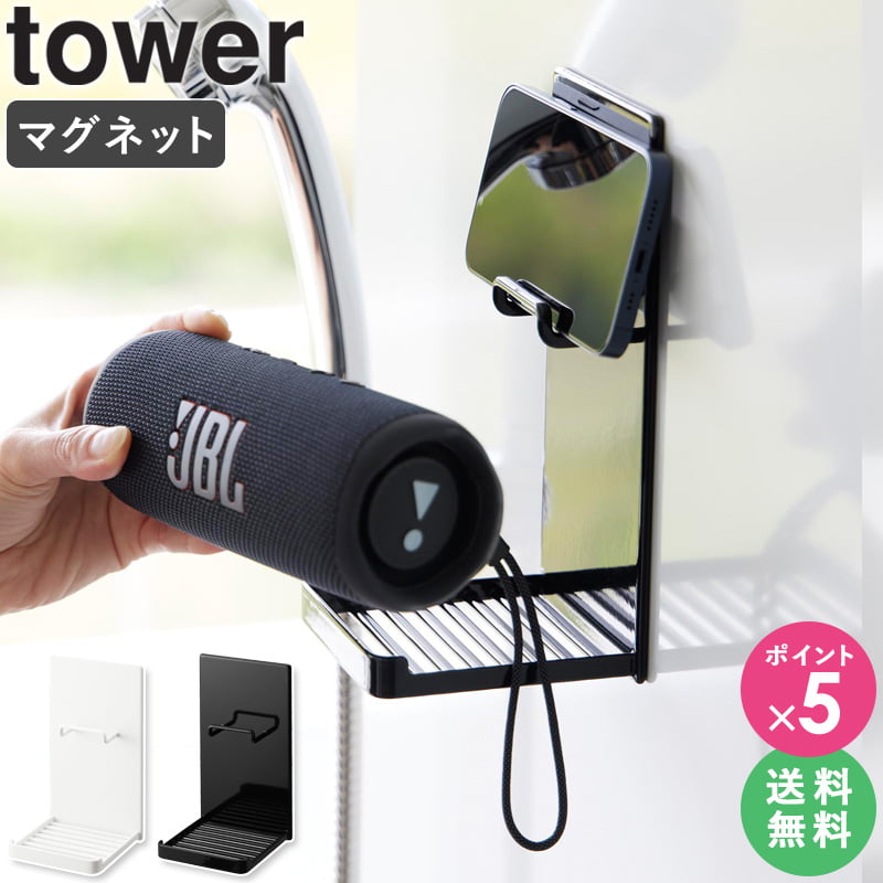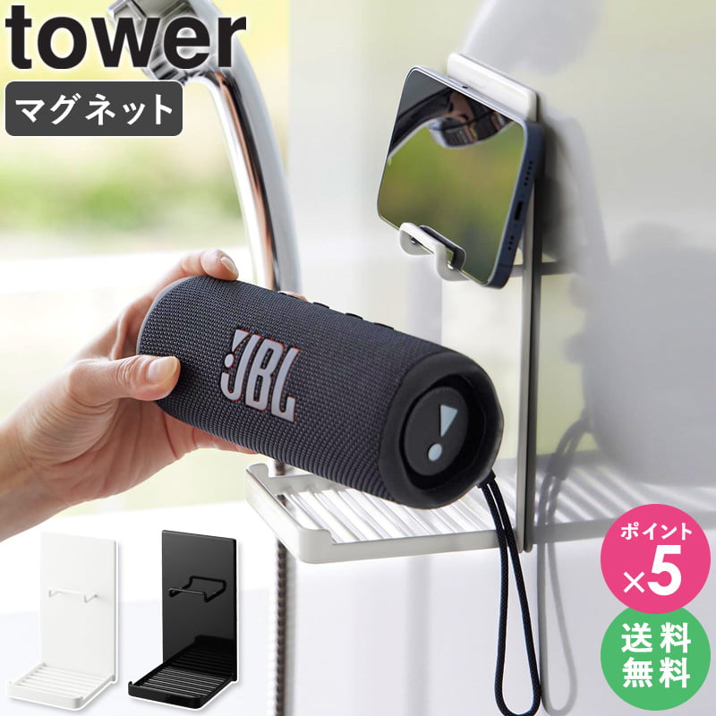 [ マグネットポータブルスピーカートレー タワー ] 山崎実業 公式 tower お風呂 1947 1948 ホワイト ブラック / ワイヤレス スピーカー スマホ ホルダー 携帯 スタンド bluetooth ブルートゥース yamazaki JGS 最強配送 dej cpj 送料無料