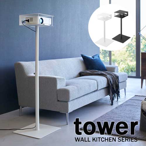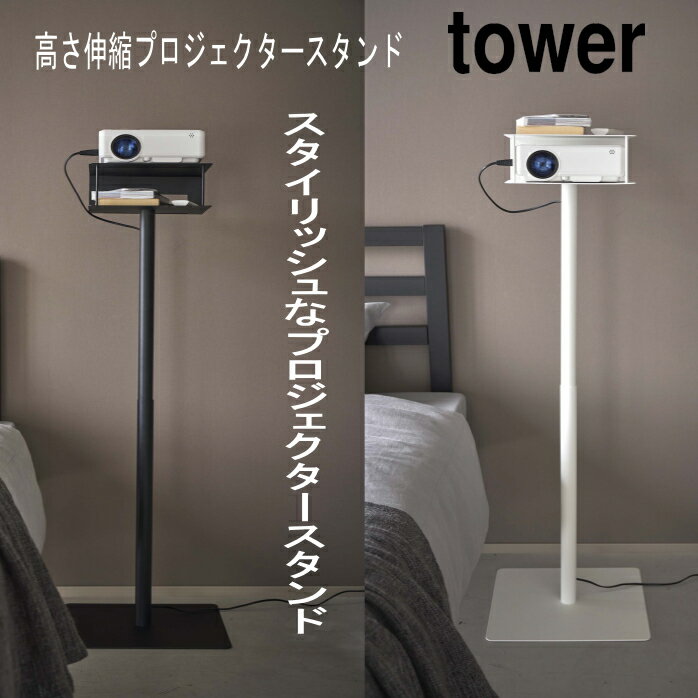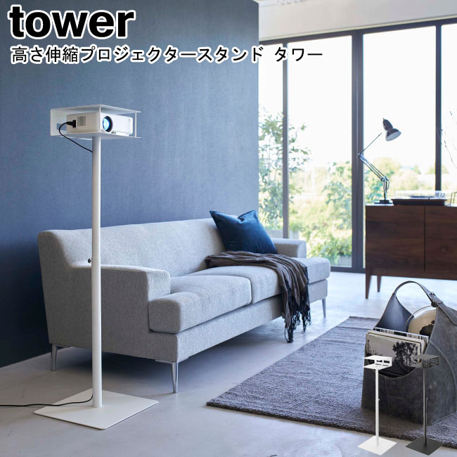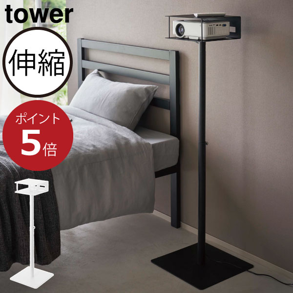 ( 高さ 伸縮 プロジェクター スタンド タワー ) tower 山崎実業 公式 オンライン 通販 プロジェクター台 床置き ホームシアター 会議室 事務室 寝室 リビング ポータブル 映写機 映画鑑賞 動画 収納 シンプル おしゃれ ホワイト ブラック 白 黒 6027 6028