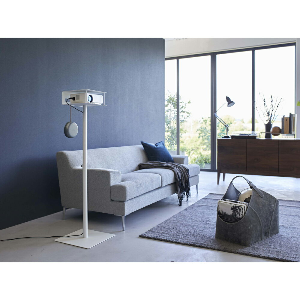 インテリアに馴染むデザインでプロジェクターとリモコン類をまとめて収納できるプロジェクタースタンド。 高さが77~120cmまで無段階で調節できるから、リビングや寝室、どこでも。 配線はパイプの中に隠せる仕様で、見た目もスッキリ、ごちゃつきをオフしてくれます。 ホームシアターを快適にサポートしてくれるおすすめのアイテムです。 ●送料無料です。tower高さ伸縮プロジェクタースタンド タワー 高さ77~120cmまで無段階で調節できる伸縮型のプロジェクタースタンド。 収納付き天板には中棚・天板どちらにもプロジェクター設置可能。プロジェクターだけでなく、リモコン類などもまとめて収納できます。 パイプに配線を通すことができる仕様になっているから、ごちゃつきなく、見た目もすっきり。 リビングや寝室、どんなインテリアにも馴染むデザイン性、ホームシアターを快適にサポートしてくれる機能性も兼ね備えたtowerのプロジェクタースタンドです。 ※スタンドのみの販売ページです。プロジェクター・パソコン等は付属しておりませんので、別途ご用意ください。 プロジェクターはもちろん、リモコンや説明書などをまとめて置ける便利な収納付き天板。 中棚にプロジェクターを収納、天板にノートパソコンを置くことができるから接続もラクラク。プロジェクターが中棚に入らない場合は天板に置いて使用することもできます。 ■収納部内寸・天板サイズ <収納部内寸>約 幅25 × 奥行22.5 × 高さ10cm / 耐荷重 約 1.5kg <天板サイズ>約 幅25 × 奥行25cm / 耐荷重 約 1.5kg きれいな画像を投影するにはプロジェクターとスクリーンの高さを合わせることが大切。高さを約77~120cmまで無段階で細かく調節できるこの伸縮型スタンドなら、設置をスムーズにしてくれます。 シンプルながら機能性も完備 ごちゃつきがちなケーブルはパイプの穴に通して、見た目もすっきり。中棚にプロジェクターを設置しても、熱がこもらない排熱穴が空いているから安心してお使いいただけます。 嬉しいフック付き ポータブルスピーカーを吊り下げたり、余ったケーブルなどの収納場所をプラスしてくれる、あると便利なフック付き。 リビング・寝室におすすめの収納アイテム tower加湿器スタンド タワー tower立て掛けコーナーコートハンガー タワー towerキャスター付きケーブル収納ラック タワー [ NEW ] 大人気のtowerなど山崎実業の最新アイテムはこちら ●商品の詳細● 品 名 tower 高さ伸縮プロジェクタースタンド タワー サイズ 本体:約 幅35 × 奥行35 × 高さ77~120cm (収納部内寸:約 幅25 × 奥行22.5 × 高さ10cm) 天板:約 幅25 × 奥行25cm 耐荷重 天板:約 1.5kg 収納部:約 1.5kg 材 質 スチール(粉体塗装) 重 量 約 5100g カラー ホワイト/ブラック 付属品 フック×2、六角レンチ×2 入 数 1個 備 考 組み立て品 ■注意点 ※製品サイズをご確認ください。 ※不安定な場所を避け、平らな場所に設置してください。 ※毛足の長いカーペットの上などで、ご使用にならないでください。 ※収納するもののサイズや形状によっては収納できないものもあります。 ※収納する場所のサイズや形状によっては設置できない場合がありますので、ご了承下さい。 ※耐荷重を超える使い方はしないでください。 ※調節ネジを強く締め付けすぎると、パイプ(細)に傷が入ることがあります。ご了承下さい。 ※製品は屋内でご使用ください。屋外でのご使用は変色や錆びの原因となりますので、ご使用はお避け下さい。 ※商品の色は、画像と実物とでは多少異なる場合がございます。色・イメージが違う等の理由による返品は一切お受けできません。予めご了承下さい。