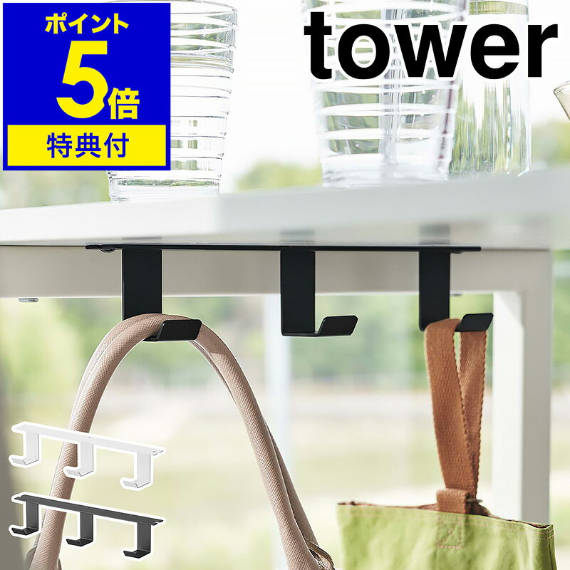 【特典付き】[ デスク下フック3連 タワー ]山崎実業 tower バッグハンガー ヘッドホンフック バッグ 収納 デスクフック 三連 バッグ収納 吊り下げ ヘッドホン 掛け 机 テーブル 北欧 おしゃれ モノトーン yamazaki ブラック ホワイト 5853 5854【ポイント5倍】 公式