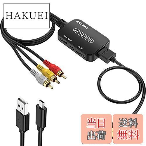 【送料無料】ABLEWE RCA to HDMI 変換コンバーター AV to HDMI コンポジット 1080/720P切り替え 音声出力可 USB給電 【日本語取扱説明書付き】3色(赤 白 黄)ビデオ/avケーブル hdmi ケーブル付き N64用 Wii PS2 Xbox VHS VCR Camera DVDなど対応 av to hdmi変換ケーブル