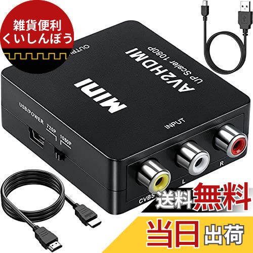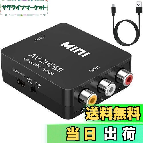 【AV2HDMIコンバーター】本製品はRCAコンポジット信号をHDMI信号に変換するためのコンバーターです。ビデオだけではなく、音声も同時に出力できるHDMI変換コンバーターです。【AVケーブル/ HDMI変換ケーブル付き】:接続が簡単で、プラグアンドプレイも不要、ドライバーも不要です。 便利なオールインワンケーブルは、HDMIチップセットにRCAを装備しているため、コストを節約し、標準の5V / 1AミニUSBポート(製品に含まれているUSBケーブル)で使用されるコンポーネントを節約できます。【720P/1080P対応】:720P/1080P切り替えスイッチ付き、出力デバイスによって解像度の変換が可能、最大1080pまでのHD解像度をサポートします。RCAの音声と映像信号を同時に出力可能です。(ご注意:画質向上には向いていません。)【すべてのデバイスに適用】:TVボックス、Xbox、PS3、PS4、プロジェクター、DVDプレーヤーなど、あらゆるRCAデバイスを備えたテレビ/ディスプレイに対応しています。それに、モニター/テレビ/ HDTV / TVボックス/プロジェクターなどHDMI入力を備えたディスプレイにHDMIの端を接続します。注:一部のデバイスでは、付属のUSBケーブルを使用してコンバータの電源をオンにする必要があります。【セット内容】:AV2HDMIコンバーター*1、日本語取扱い説明書*1、電源供給用ケーブル*1。※HDMIケーブルとAVケーブルは付属いたします。