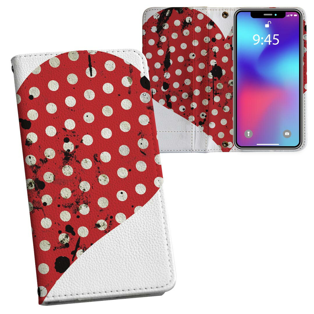 iPhone11 6.1インチ 専用 iphone 11 アイフォン softbank docomo au 両面プリント 裏表 内側 内面 スマホ カバー レザー ケース 手帳タイプ フリップ ダイアリー 二つ折り 革 フルデザイン 002360 ラブリー ハート 水玉 ビンテージ
