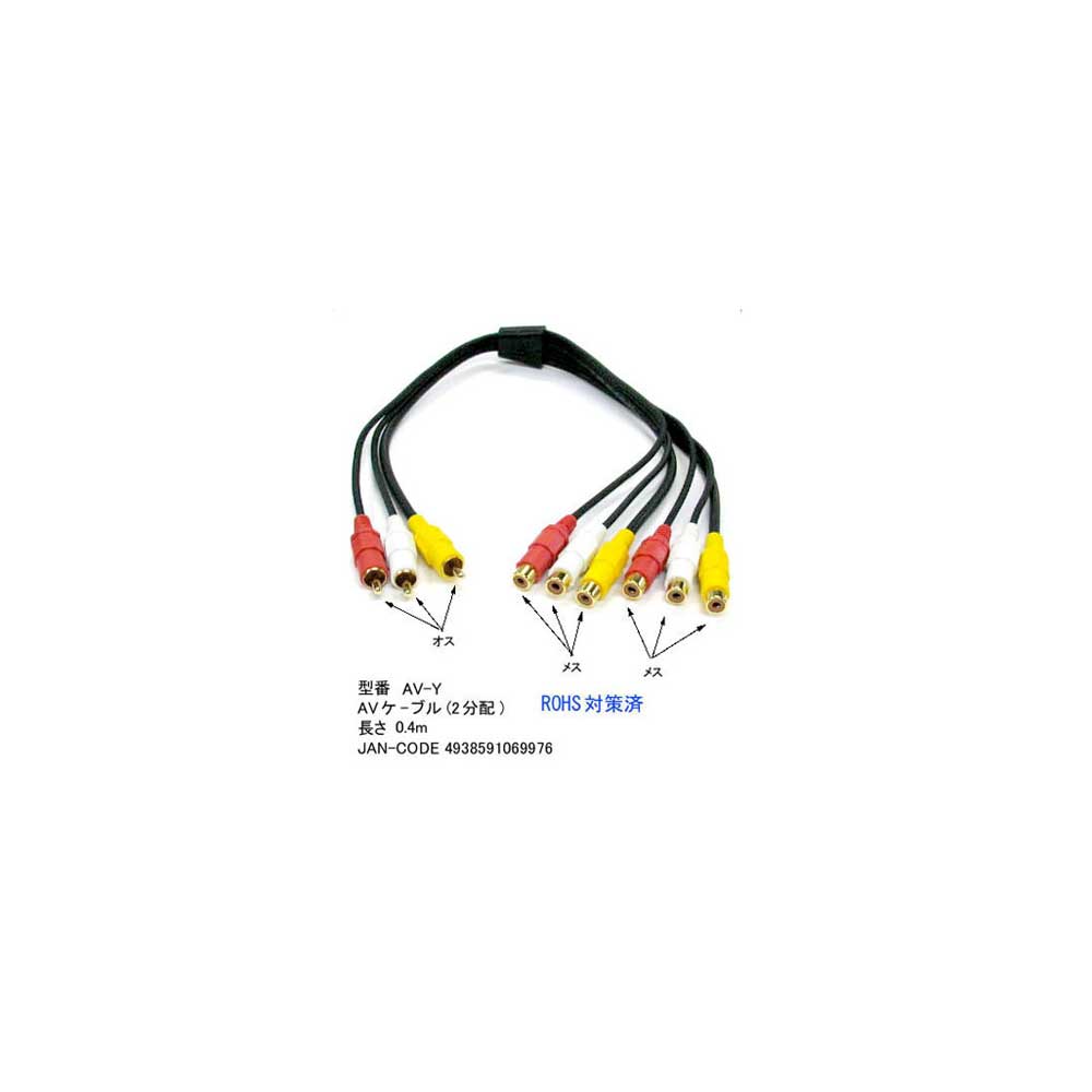 AV2分配ケーブル-ピンプラグ(黄/赤/白)オス⇔メスx2/0.4m (AV-Y)