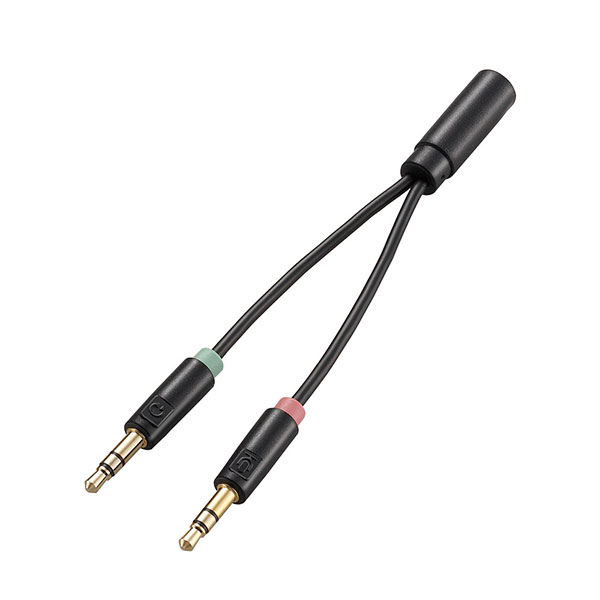 ご注意ください※iPhone付属のイヤホンには対応しておりません。●気になる商品マイク付きイヤホン用φ3.5mm変換ケーブルスマートフォン/タブレットPC用マイク付きイヤホンがパソコンで使える。マイク付きイヤホン(φ3.5mm4極ミニプラグ)をパソコン(φ3.5mmミニプラグx2)に接続できる変換ケーブル。■ φ3.5mm4極ミニプラグを搭載したスマートフォン/タブレットPC用マイク付きイヤホンを、φ3.5mmミニプラグx2(マイク入力端子・イヤホン端子)に接続できる変換ケーブルです。※ヘッドセット/ヘッドホンマイクの通話/終話ボタンやミュートボタンは、使用する機器によって動作が異なるため、サポートしていません。※iPhone付属のイヤホンには対応しておりません。[仕様情報]対応機種 : φ3.5mmステレオミニジャックのマイク入力及びヘッドフォン出力端子のインターフェイスを搭載し、Windows8.1/8/7/Vista(~SP2)/XP(SP2~SP3)が動作するPC及びAT互換機(DOS/V機) ※Macintosh及び、iPhone付属のイヤホンには対応いたしません。コネクタ形状1 : φ3.5mm 4極ステレオミニジャックコネクタ形状2 : φ3.5mmミニプラグx2(マイク/イヤホン)長さ : 約0.05m[メーカー]エレコム ELECOM (エレコム)型番JANAV-35AD01BK4953103449121[色] ブラック[規格] mini-pinエレコム マイク付きイヤホン用 オーディオ変換ケーブル (3.5mm 4極メス - 3.5mm オス x2) # AV-35AD01BK エレコム