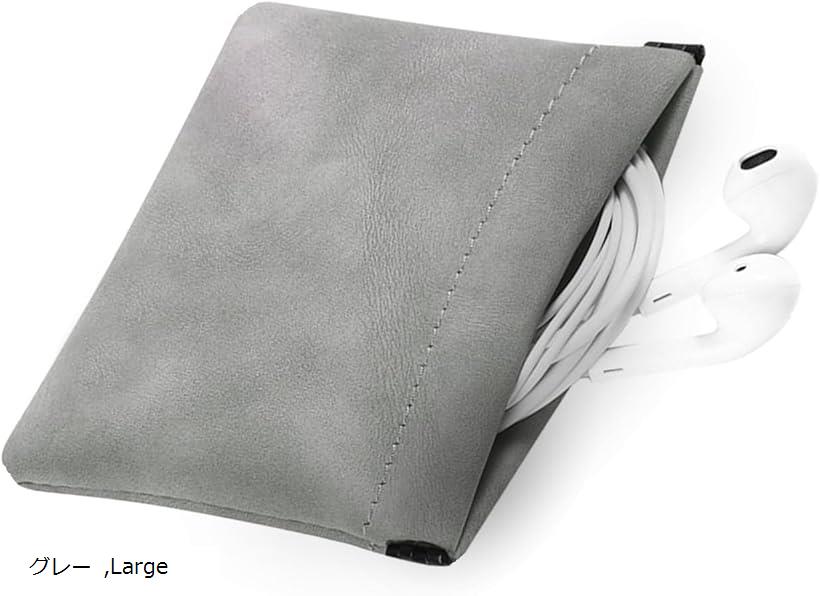 【楽天ランキング1位入賞】イヤホンケース ポーチ 小さめ 有線 イヤホンポーチ レザー素材 耐衝撃 防水 保護ケース 滑り止め 安全保護Lサイズ グレー (グレー, Large)
