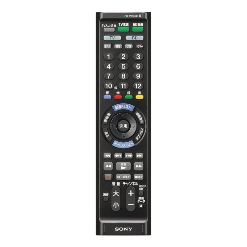 ソニー マルチリモコン RM-PZ130D テレビ/BDレコーダ・プレーヤー操作可能 ブラック RM-PZ130D BBテレビに加え、BDレコーダーなどの操作が可能。簡単操作のリモコン。LED×3個の強力広角赤外線発光「ズバとびっ 」搭載メーカー設定もかんたん。電源ボタンと4桁のメーカー番号を押すだけ。使用しないボタン、誤って押さないようにしたいボタンを操作できないように設定可能付属品:お試し用電池、取扱説明書、書