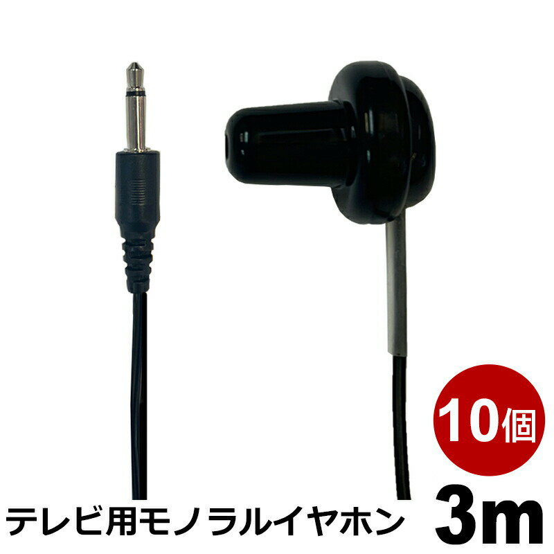 \ポイント5倍/ テレビイヤホン 3m 10個 高音質 ロングコード 片耳 有線 3.5mmプラグ 軽量 ストレート型 モノラルイヤホン 3Aカンパニー EAR-MST03BK-10P 【メール便送料無料】