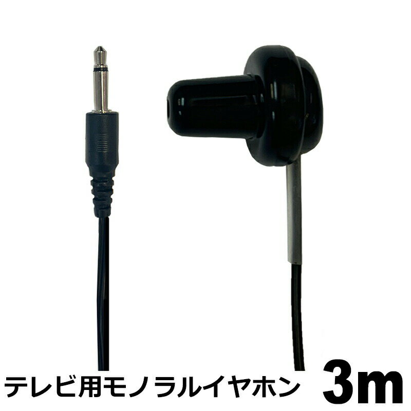 \ポイント5倍/ テレビイヤホン 3m 1個 高音質 ロングコード 片耳 有線 3.5mmプラグ 軽量 ストレート型 モノラルイヤホン 3Aカンパニー EAR-MST03BK 【メール便送料無料】