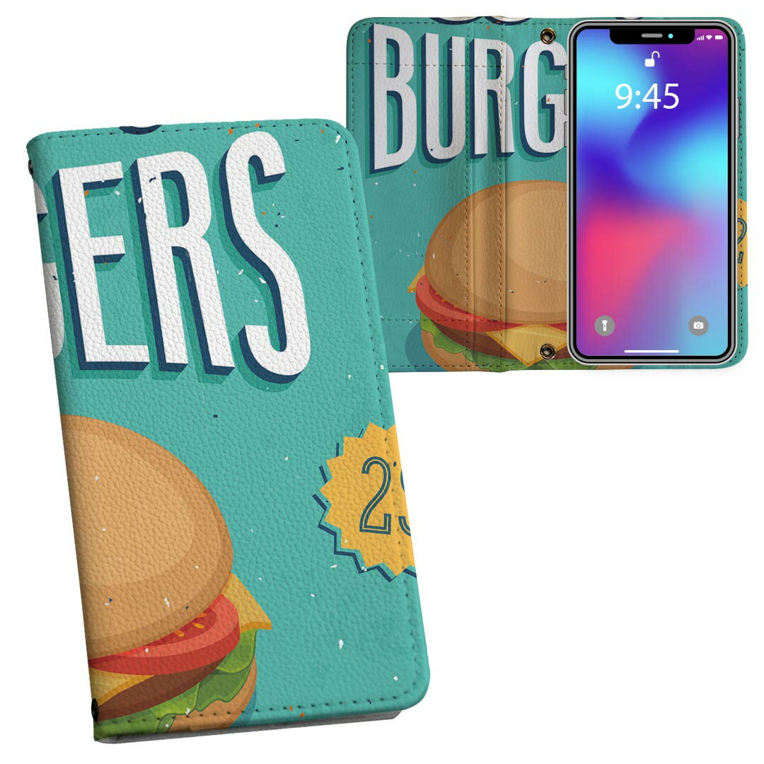 iPhone11 Pro 5.8インチ 専用 iphone11pro アイフォン softbank docomo au 両面プリント 裏表 内側 内面 スマホ カバー レザー ケース 手帳タイプ フリップ ダイアリー 二つ折り 革 フルデザイン 006208 その他 バーガー 英語 文字