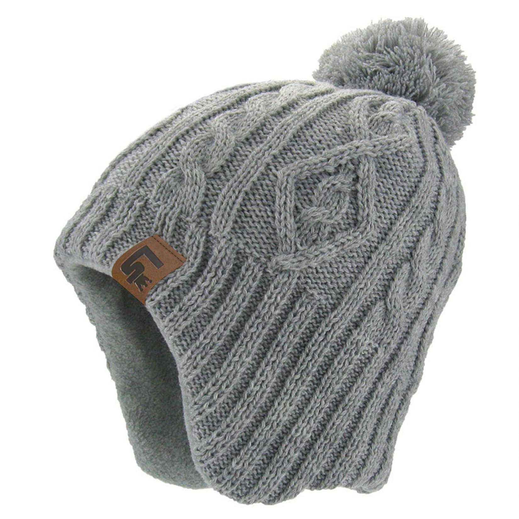【送料無料】[LittleSpring] 耳あて ニット 帽子 ポンポン付き 防寒 防風 あったか ニットキャップ キッズ用ハット ニット帽 子供服 ジュニア ボーイズ 色:グレー-無地、サイズ:S